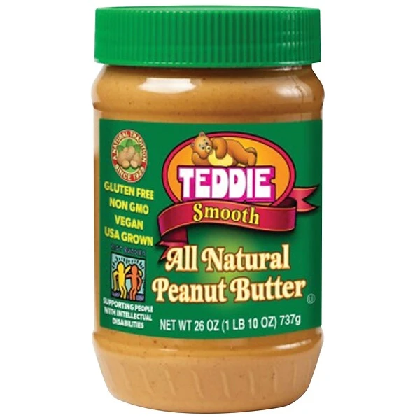Teddie peanut butter is non-GMO, gluten free, vegan friendly and 100% made with the USA