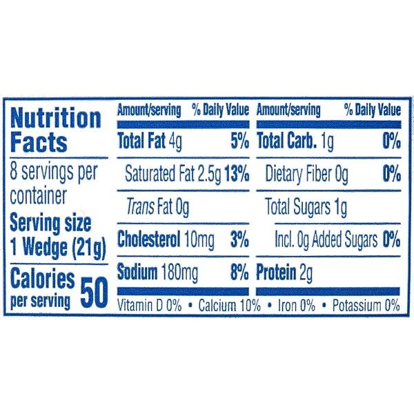- Only 50 calories per cheese wedge