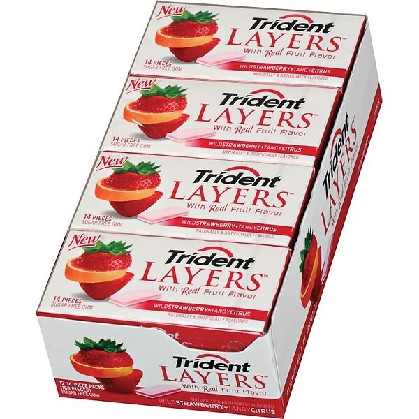 It’s much more than gum. It’s a gumwichâ„¢! Try Citrus sandwiched between two layers Strawberry. Find out what Apple stacked on Pineapple stacked on Apple tastes like. As if chewing Trident® wasn’t good enough, now happy comes in layers.