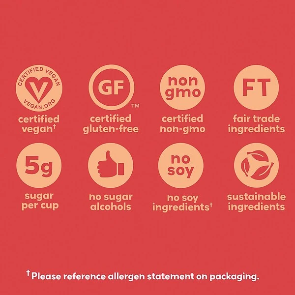 - ALL-REAL – certified gluten free by GFCO, certified vegan, no dairy ingredients, no soy ingredients, no artificial flavors, no sugar alcohols, no preservatives, and no fillers.