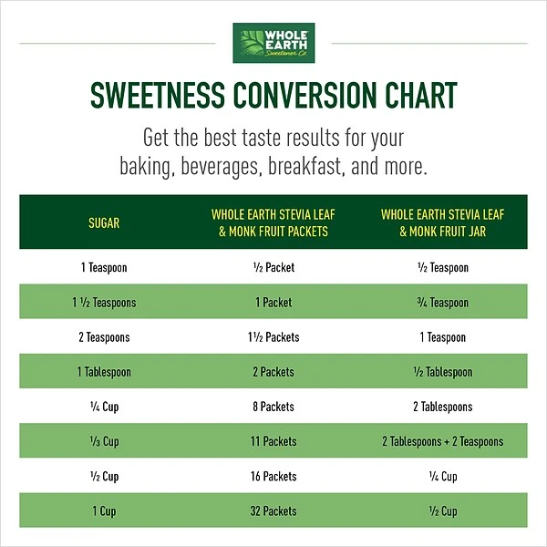 Whole Earth Stevia Leaf and Monk Fruit Natural Sweetener Blend is the perfect, guilt-free solution to sweetening your drinks, baked goods, and more!