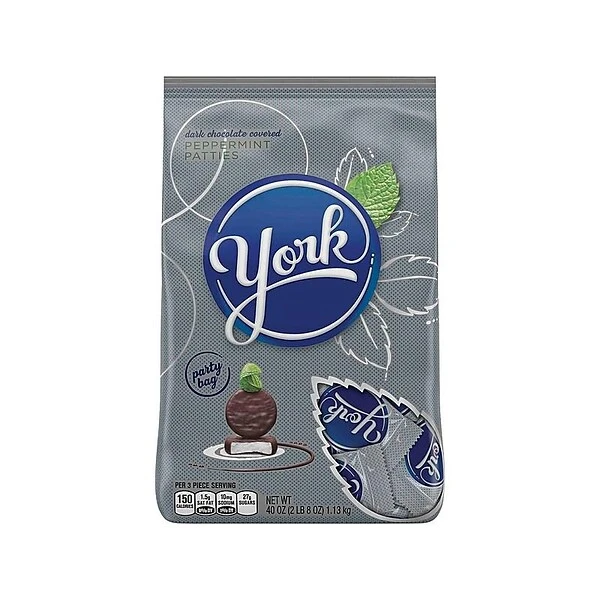 Offer these delicious peppermint patties to patients, clients and other guests. The scrumptious outside shell offers a sweet, rich chocolaty taste, while the inside peppermint provides a refreshing, delicious sensation that is sure to satisfy your sweet tooth. These York peppermint patties are miniature for convenient snacking and are individually wrapped, preventing them from sticking together and making it easy to hand them out.