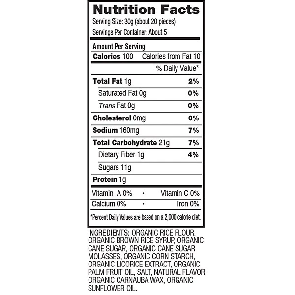 Black Licorice lovers rejoice! There is now an Organic, Gluten Free Black Licorice that also meets the California Prop 65 standards. Available in a resalable 5-ounce bag, our Black Licorice is USDA Organic, Non-GMO Project Verified, Gluten Free, Vegan, Nut Free and Dairy Free. You’ll love the bold yet classic flavor.